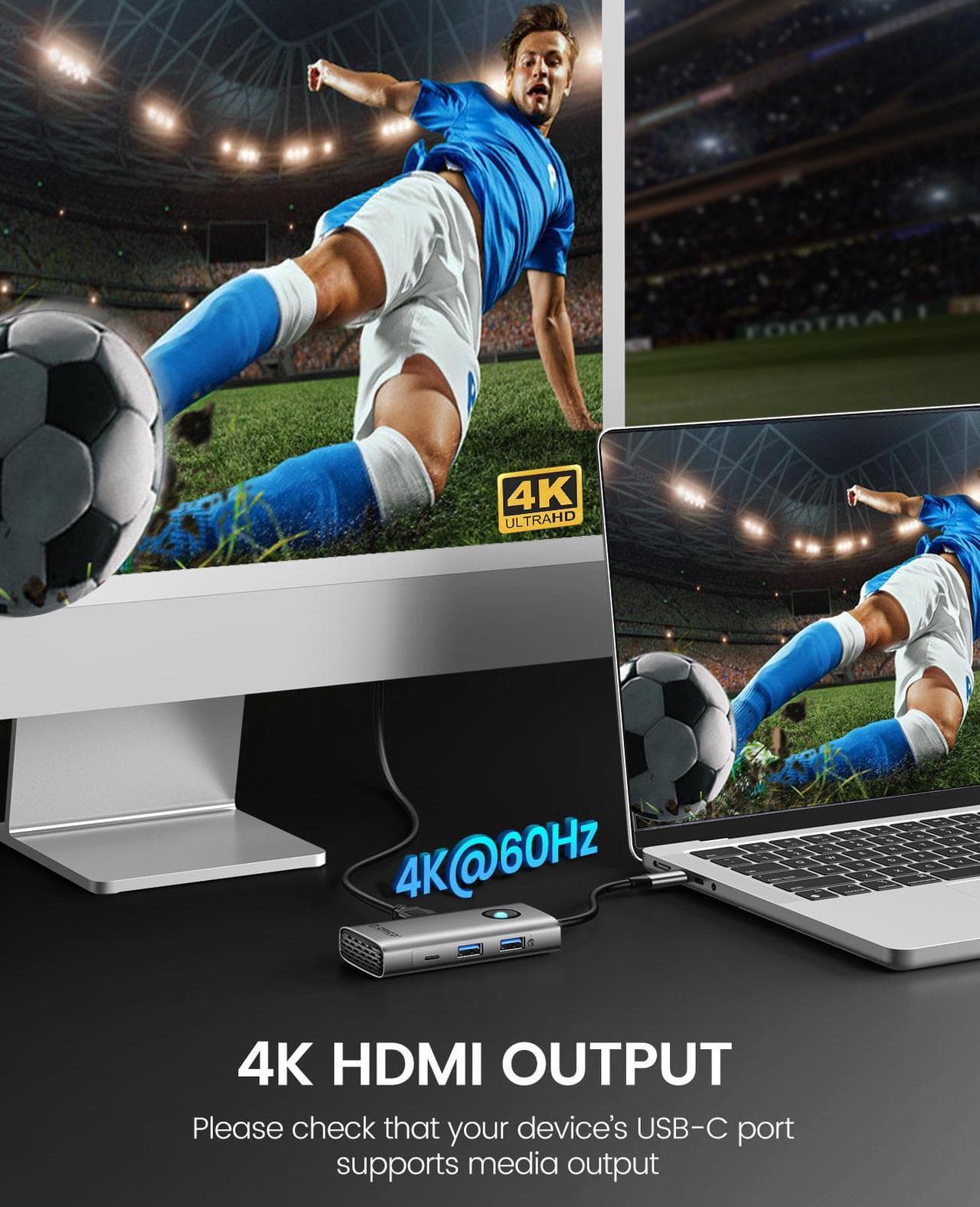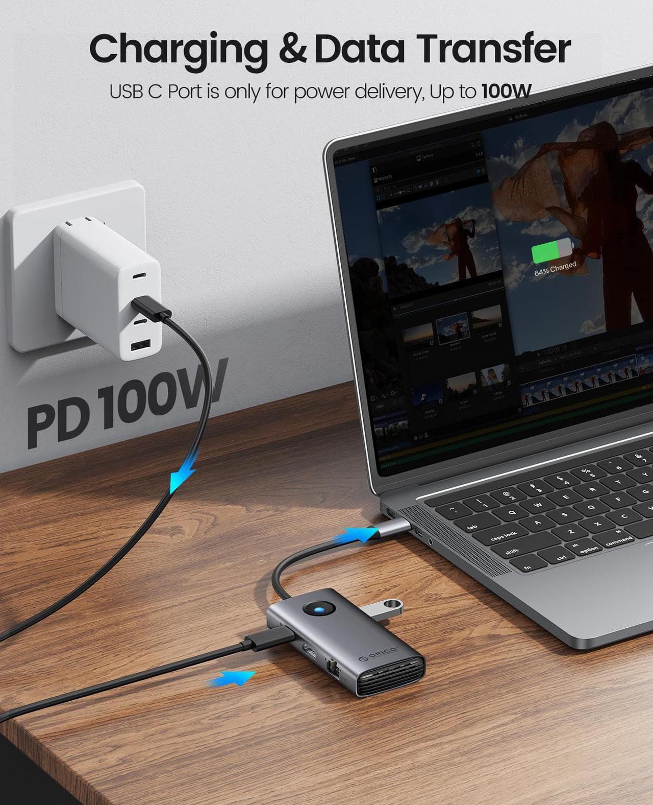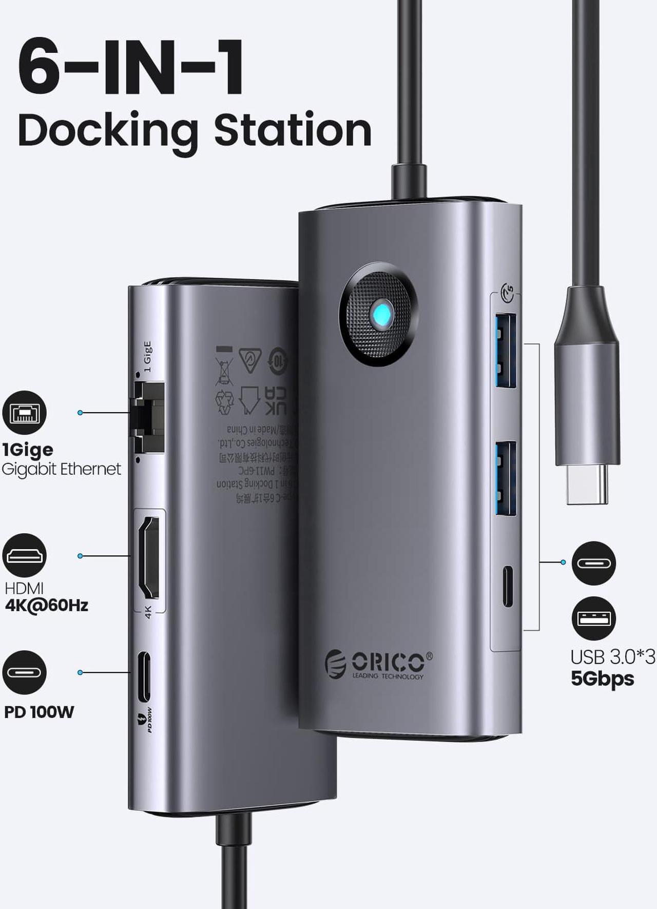 ORICO Docking - HUB Tablet/Telefon Şarj ve Kulaklık Kullanımı 6in1 HDMI 4K PD100W USB3.0 Ethernet